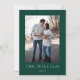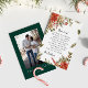 Celebre a época com estilo com nosso cartão elegante de Natal, apresentando um design festivo em verde esmeralda e uma fonte delicada e simples. Um lado exibe sua mensagem personalizada de Natal, enquanto o outro lado destaca uma foto personalizada - perfeito para compartilhar uma memória querida com os entes queridos. Seja um retrato de família, um momento espontâneo ou uma foto favorita de Natal, este cartão lindamente desenhado traz calor e alegria a todos na sua lista.