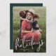 Um Cartão de Boas Festas Simples com Foto Moderna em Script com fonte manuscrita e foto de retrato em bleed total na frente com o nome da família. O verso tem uma segunda foto com uma mensagem de Natal sincera da família. Clique no botão editar para personalizar este design.