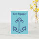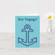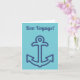 É o cartão perfeito para desejar uma boa viagem a alguém, esteja eles navegando pelo mundo ou partindo em um cruzeiro. Este cartão tem um fundo azul aqua com uma ilustração de uma âncora de navio em estilo náutico em azul e texto azul. Todo o texto neste cartão é totalmente editável para que você possa incluir sua própria mensagem na frente e no interior deste cartão de cumprimentos. É um ótimo cartão de despedida para viagem, mas você pode usá-lo para qualquer ocasião - melhoras, congratulações, Dia dos Pais, aniversário - o que flutuar seu barco! Encontre mais acessórios e presentes para proprietários de barcos pontão em nossa loja Zazzle Pontoon Boat Paradise.
