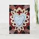 Este cartão tem uma imagem de uma das minhas criações em metal chamada "Milagro". Minha inspiração para todo o meu trabalho vem do meu grande amor pela cultura do meu país, arte popular e tradições. Esta peça em particular é minha própria interpretação dos corações Milagro.