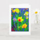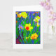 Cartão com narcisos brilhantes e alegres na frente. Uma pintura digital a partir de uma fotografia. Em branco por dentro para a sua própria mensagem.