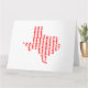 Deseje um Feliz Dia dos Namorados aos seus entes queridos com amor do tamanho do Texas usando este cartão de cumprimentos em branco! A frente apresenta corações dispostos em forma do Texas, dando-lhe um toque único e charmoso. O interior está em branco para sua mensagem personalizada. Espalhe o amor com este cartão exclusivamente texano! Compre agora para uma celebração inesquecível do Dia dos Namorados!