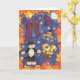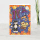 Cartão de boneca de papel do Dia das Bruxas. Gatinho boneca com duas fantasias. Divertido para crianças ou colecionadores.