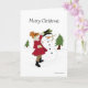 Cartão de Boneco de Neve e Menina em um Casaco Ver
