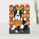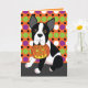 Boston Terrier com o cartão de cumprimento customizável do Dia das Bruxas da lanterna de Jack O