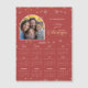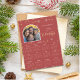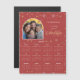 Calendário de cartões magnéticos com fotografia e saudação de Natal. Apresenta a sua fotografia selecionada juntamente com uma saudação personalizada e o calendário 2026 num fundo vermelho de flocos de neve do inverno.