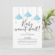 Cartão de cancelamento de chá de bebê, aspersão de bebê azul. Aconteça o que acontecer, o bebê não pode esperar, embora o chá possa. Mantenha todos atualizados. Criado por Thisisnotme©