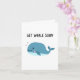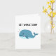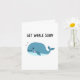 O cartão de boas-vindas apresenta um charmoso cartoon baleia azul, seu rosto sorridente e azul claro embaixo trazendo uma sensação de alegria para o design. Posicionada no centro da imagem, a baleia encara à esquerda com a cauda apontada para cima e para a direita, acrescentando um toque de capricho ao olhar geral. O texto divertido, escrito à mão, sobre a baleia lê "GET WHALE LOGO", um trocadilho inteligente que traz um sorriso à cara de qualquer um. Contra o fundo branco, destaca-se a baleia colorida e o texto, criando uma mensagem limpa e simples, mas que se ergue, para transmitir os vossos desejos. 🐋 🌟