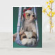 Consiga uma boa carta com um cachorrinho de cachorro inglês com uma fita vermelha.