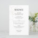 Cartão de menu personalizável com script elegante, tipografia simples e flor desenhada à mão. Este cartão de cardápio é perfeito para qualquer tema de casamento e estação. Personalize adicionando nomes, data e detalhes do menu.