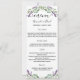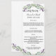 Um cartão de menu elegante. Personalize e adicione seus nomes, data e menu. Decorado com flores de lavanda, flores e verde de eucalipto.