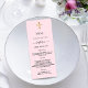 Batismo, cartão de cardápio batizante. Personalize e adicione um nome, data e menu. Um fundo pastel de rosa claro e uma cruz ouro.