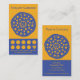 Cartão de Carimbo de Lealdade de Pizza com gráfico de pizza de marrom em ambos os lados do cartão. O modelo de cartão de negócios tem um esquema de cor azul e dourada. A parte traseira do cartão tem 10 titulares de selos/socos e espaço para a oferta de recompensa da sua empresa.