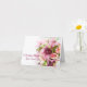 O Cartão de Casamento é mostrado com uma impressão de fotografia de um adorável buquê de noiva. Texto: "Uma bênção de casamento para o seu dia especial". A mensagem dentro diz: " Que você tenha amor que nunca acaba, muito dinheiro e muitos amigos, saúde seja sua, o que você fizer, e que Deus envie muitas bênçãos para você." Personalize este item ou comprar como está. Texto mostrado em um adorável rosa profundo.