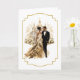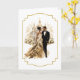 O cartão de casamento é mostrado com uma linda impressão artística da noiva e do noivo.