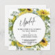 A distinção deste simples conjunto deve-se à fonte moderna, escrita à mão, usada para frases-chave, e às belas imagens florais. Nessa peça, o roteiro elegante foi usado para criar um gráfico que retrata a palavra "Atualizar". O texto é enquadrado numa coroa circular de girassóis e eucaliptos aquosos. Um buquê de coordenação também aparece no verso. Use os campos de modelo para adicionar seus detalhes pessoais e tornar este design moderno seu próprio. Estão também disponíveis peças com texto alternativo. Por favor, responda a quaisquer solicitações especiais ou personalize a assistência. 151 //