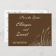 Design elegante de Aveia do Mar soprando ao vento em um fundo de chocolate torna-se um lindo anúncio de casamento Save the Date. Todo o texto é totalmente personalizável por você! Procure os selos de correio correspondentes, selos de envelope, cartões de lugar e cartões postais de RSVP.