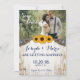 Cartão de Casamento de Girassol Rústico com Renda