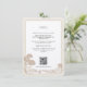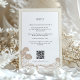 Este sofisticado cartão de informação de casamento foi projetado para fornecer aos convidados detalhes essenciais de forma chique e elegante. O cartão apresenta um fundo creme rico, exuberando um tom quente e convidativo, harmoniosamente emparelhado com ilustrações botânicas que acrescentam um toque de elegância natural. O texto, bem organizado e de fácil leitura, é apresentado numa fonte serif clássica que contribui para o apelo do eterno do cartão. Este cartão constitui um complemento perfeito do convite para o casamento, informando os convidados sobre o bloco reservado de salas e as modalidades de transporte para uma experiência perfeita. O código QR colocado de forma inteligente na parte inferior garante acesso fácil a mais detalhes no site do casamento. Este cartão não é apenas um farol de informação, é também um guardião do dia especial do casal.