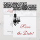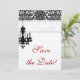 Cartão de salvar a data de casamento elegante com belo padrão de damasco de lustre. Para ver toda esta linha, basta digitar chandelierbw no campo de pesquisa.