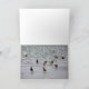A foto da dentro mostra um grupo de patos parados no gelo. Devem ter "pés frios". O cartão pode ser personalizado por muitas ocasiões.