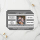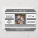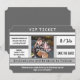 Salve o cartão de casamento de data com estilo de bilhete legal com fundo cinza médio e divisões e separações que parecem uma impressão real de bilhete, completo com sua foto em cores no meio.