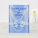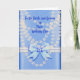 Cartão de casamento em azul e branco com pérolas falsas, um arco e um lugar falso. As palavras na dentro podem ser alteradas. Obrigados para a Creative Fabrica para alguns dos elementos na design.