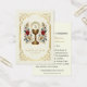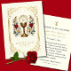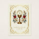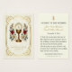 Com uma bela imagem católica tradicional da imagem da Eucaristia sobre um cálice dourado com um belo arranjo de rosas vermelhas. Sobreposta a um fundo de renda branca. Uma oração está no verso para os noivos. Todo o texto e fontes podem ser modificados.