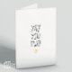 "Yay You Two" Cartão simples e adorável de parabéns. Tipografia preta com coração de ouro pequeno sobre estoque de cartão branco