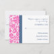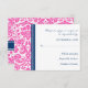 Cartões RSVP de Casamento em elegante e contemporâneo, cor-de-rosa-quente, azul-marinho escuro e cor damasco floral branca clássica e chic. Personalizável com seus detalhes de casamento, disponível em muitos produtos de casamento correspondentes.