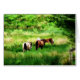 Pôneis galeses a pastar num prado de Verão. Aquarela.
