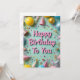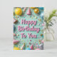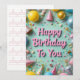 Este cartão de aniversário vibrante apresenta um texto cor-de-rosa lúcido lendo "Parabéns a Você" rodeado por balões coloridos, chapéus de festas, streams e confetti. Colocados sobre um fundo verde alegre da casa da moeda, os elementos festivos incluem sotaques brilhantes, texturas brilhantes e decorações semelhantes a doces. Perfeito para todas as idades, esse design divertido e enérgico captura o entusiasmo de uma festa e é ideal para cartões de aniversários ou convites.