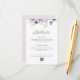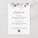 script preto com flores de aquarela roxas. Esta modelo é para informações de casamento, como acomodação, instruções e outros detalhes que você pode querer que seus hóspedes saibam.