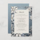 Cartão azul azul de folhagem para o inverno, com um fundo azul cinzento e azul claro e uma delicada folhagem branca para o inverno.