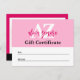 Estilo limpo e moderno com foco em uma das cores mais quentes do ano: magenta! É ousado e feminino, com uma impressão suave e limpa. Personalize facilmente os seus próprios certificados de presentes personalizados para o seu negócio de beleza, moda ou estilo de vida e muito mais!