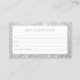 Cartão de presente elegante e feminino personalizável. Ele apresenta brilho prateado com simples tipografia. Personalize adicionando nomes, negócios e outros detalhes. Este cartão de presente com brilho prateado é perfeito para salões, estilistas, designers e muito mais.