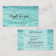 Cartão de visita de certificado-presente com um design de água espumante de turquesa. Um modelo ou cartão de visita para um spa, massagista, belicista e qualquer pessoa na profissão de bem-estar.