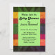 Convite para chás de fraldas. Colorida com azul, verde, rosa escuro e laranja neste convite retrô ao estilo de 70. Vamos tribal com este desenho abstrato Aztec na frente e atrás desta placa plana. O padrão está em tons de azul, roxo e castanho claro ou bronzeado. Substitua as informações por suas. Toda a personalização está disponível para a parte frontal e traseira da placa.