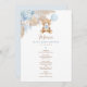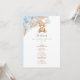Estes bonitos cartões de menu irão adicionar um toque perfeito à sua ocasião especial. O esquema de cores azul, castanho e bege torna este design perfeito para um chá de fraldas de menino. Personalize cada cartão com seus detalhes e, se quiser reorganizar o estilo e posicionamento do texto, pressione o botão "Clique para personalizar mais".