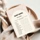 cartão de chá de fraldas minimalista e de palavras rasas As palavras neste cartão estão todas relacionadas a bebês e foram embaralhadas. Os hóspedes vão competir para ver quem pode desembaraçá-los todos primeiro! CHAVE DE RESPOSTA: 1. assento do carro; 2. leite 3. caneta para tocar 4. pacificador O quinto ponto é uma cadeira de balanço de fralda. 7. berçário 8. baby monitor; 9. swaddle 10. Fórmula. 11. Pato de borracha 12. Rolha. 13. monitor. 14. 15. Termômetro.