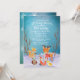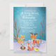 Cena de inverno russa com fundo azul estrelado, tema moderno da festa de chá de fraldas das terras maravilhosas do inverno com animais da floresta: esquilo, raposa, cervo, coruja, e um pássaro na neve. Há galhos castanhos do lado. Perfeito para comemorações e chás de fraldas de inverno. Personalize com as informações de sua parte todo o texto é totalmente personalizável.