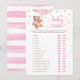 Adquira este cartão editável e desfrute de um jogo de traços de bebê do urso de pelúcia rosa e Dourado de alta qualidade, cor-de-rosa e balões! Este é um modelo de cartão, Você pode personalizar o cartão, mudar o texto como quiser! Atividades de chá de fraldas! Adivinha o jogo.
