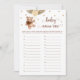 Adquira este cartão editável e desfrute do Jogo Race de Nome de Bebê de alta qualidade para o seu evento! Balões castanhos e Dourados, Urso de Teddy. Atividades de chá de fraldas!