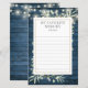 Meu cartão de memória favorito da noiva com belas luzes de corda e delicadas folhas de greenery em aquarela sobre um fundo de madeira azul rústico. Criado por Thisisnotme©