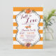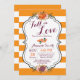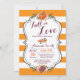 Cair no Cartão de Chá de panela de Amor com faixas laranja e brancas de fundo. Para mais personalização, clique no botão "Personalizar" e use nossa ferramenta de design para modificar este modelo.