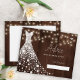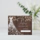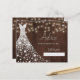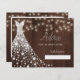 Diamantes brancos brilhantes vestido de noiva em uma madeira marrom escura com cordas de luzes cintilantes fazer um moderno e rústico cartão de chá de panela elegante.
