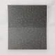 Placa de lugar dobrada de cinza de quadro com fundo de bolinhas dourado. Gráficos de uma placa de texto dourada, na frente está pronta para personalizar manualmente para cada convidado no seu casamento. A parte traseira do cartão tem a mesma placa dourada com texto preto personalizado pronto para você mudar para ler o que você quer.
