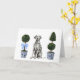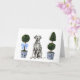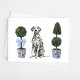 Estes cartões de saudação apresentam um retrato de aquarela de um Dalmático sentado entre dois topiários do estilo chinoiserie.