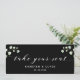 Fonte preta de caligrafia com floreios contra papel branco crocante para cartões de quadro de mesa.
