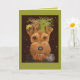 Welsh terrier com um monte de erva escavada e outros elementos da natureza no cartão para você personalizar sem custo extra